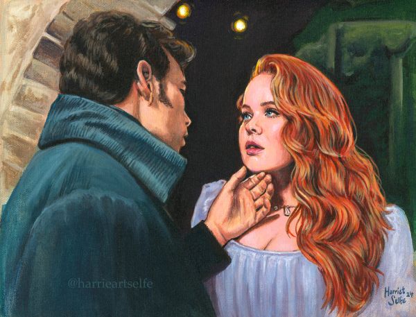 Harriet is heavily inspired by the Pre-Raphaelites; in particular, Edward Burne-Jones, William Morris and Dante Gabriel Rossetti, with their style of dramatising a traditional portrait painting. Their works show abundant detail, intense colours, rich patterns and complex compositions based on Italian art.